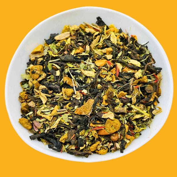 Let ancient Pu-erh tea improve your gut biome with beneficial probiotics that come from the fermentation of the tea leaves. In combination with ginger and turmeric, this is the triumvirate of gut goodness!