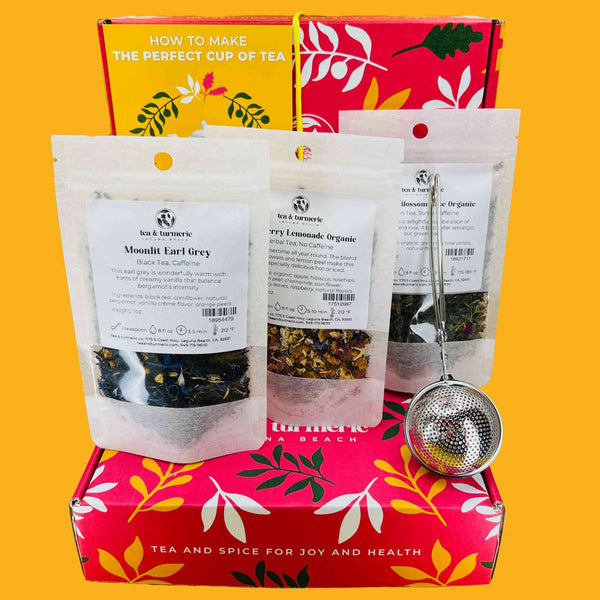 Packed with our three top selling black, green and herbal teas and a beautiful stainless steel tea infuser, get yours before they're gone.