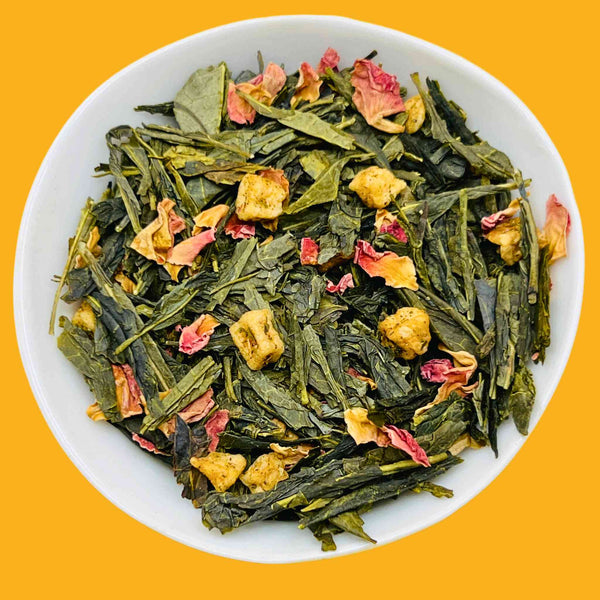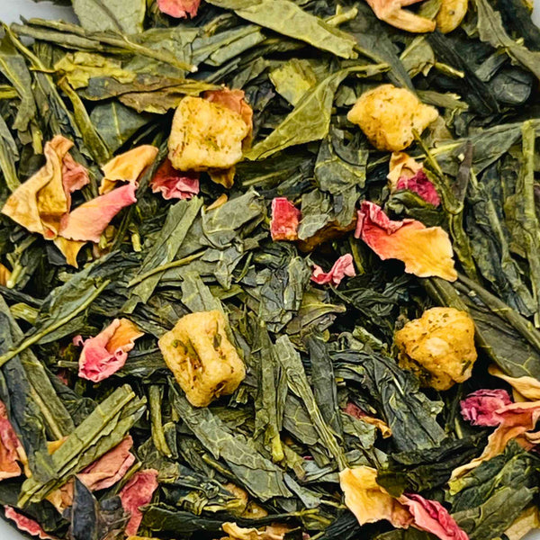 Ingredients: green tea, apple, rose petals, lychee & rose flavors
