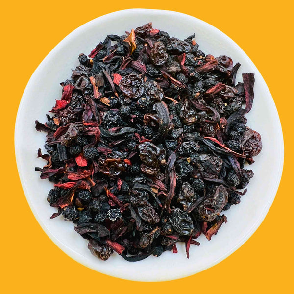 Ingredients: elderberry, currants, hibiscus petals, natural flavors