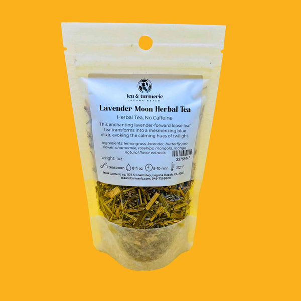 Lavender Moon is a botanical blend reminiscent of the serene moments before nightfall. This enchanting lavender-forward loose leaf tea transforms into a mesmerizing blue elixir as it steeps, evoking the calming hues of twilight.