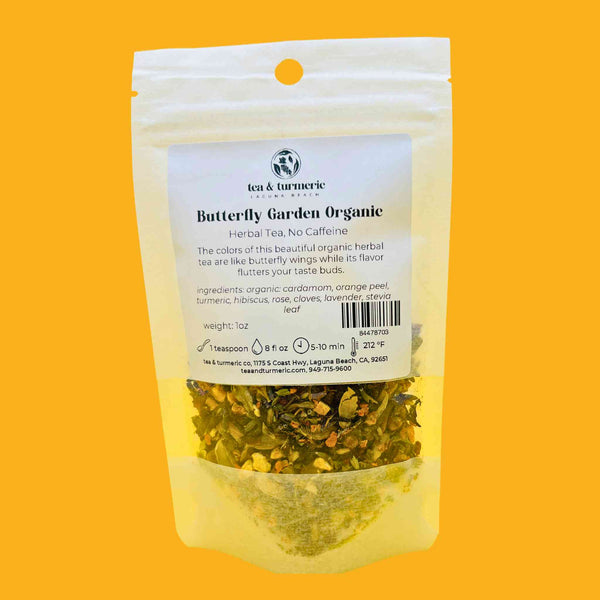 A feast for the eyes as well as the palate. The beautiful colors and aromatic spices of this organic herbal tea are like butterfly wings while its flavor flutters your taste buds.