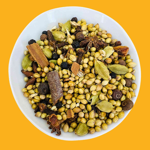Ingredients: organic: coriander, cinnamon, star anise, cardamom, allspice, cloves, ginger, black pepper