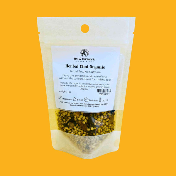 Enjoy the armoatics and taste of chai without the caffeine. Drink alone or add it your favorite herbal base, like rooibos, for added spicey chai goodness. Great for mulling too!