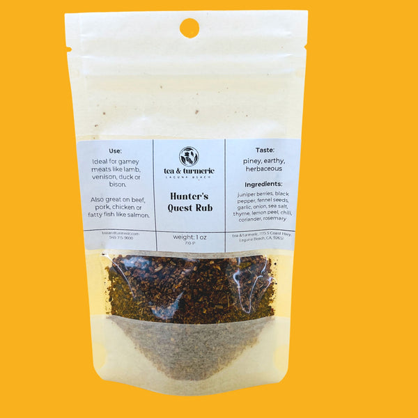 A very different type of meat rub. The star of this rub is juniper berries which are the primary flavor component of gin. This peppery, complex rub is fantastic on any meat, but especially delicious on gamey meats or even fish.