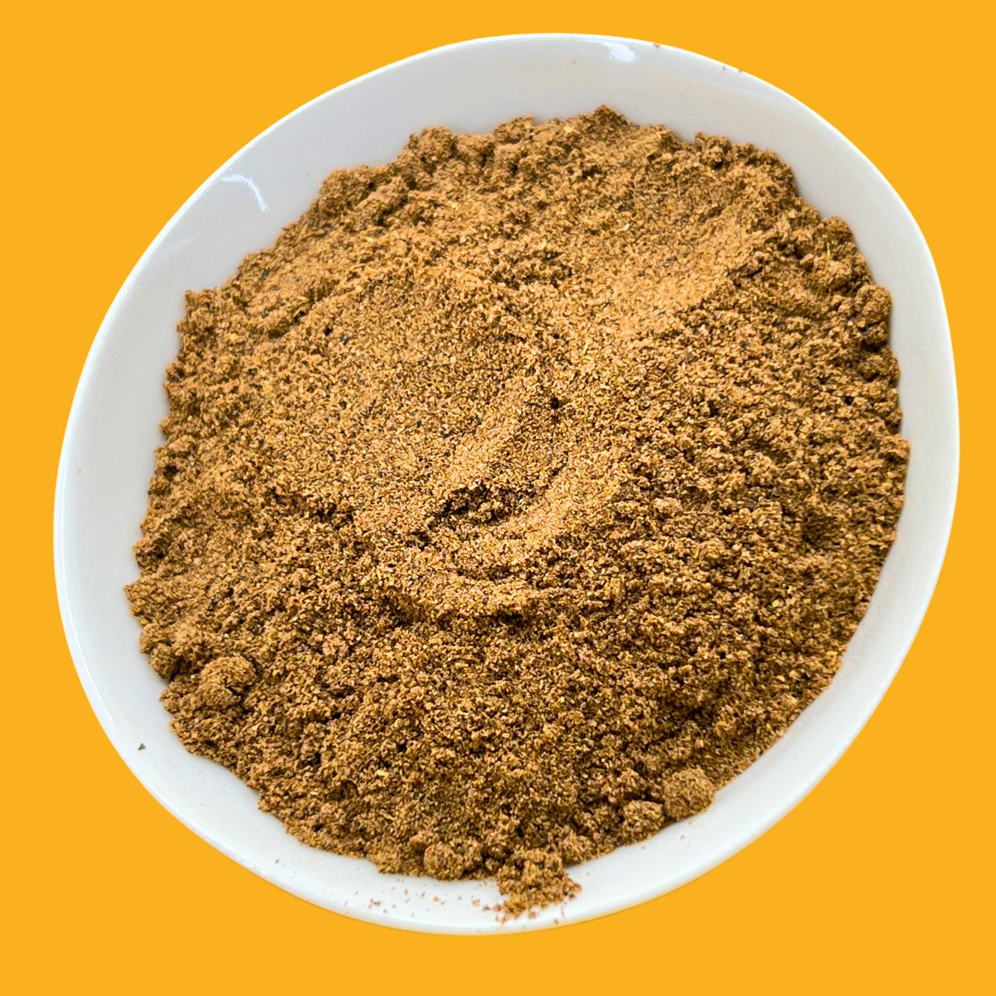 Ingredients: cumin seed, ginger, coriander seed, black peppercorn, cassia cinnamon, cayenne pepper, cloves, allspice.