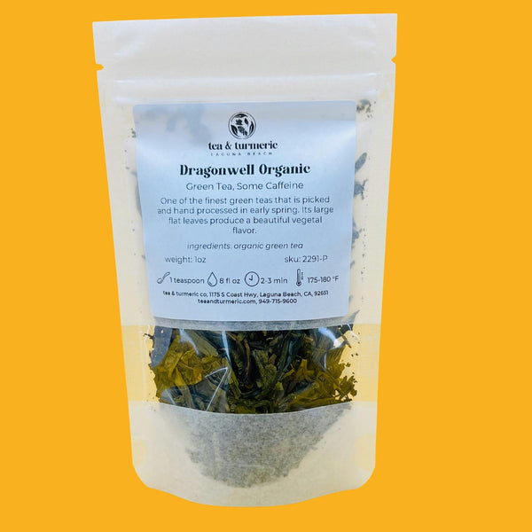 One of the finest and most famous green teas of China. It is hand picked and hand processed only in early spring. Its large flat leaves produce a beautiful and delicate vegetal flavor. Try this tea "grandpa" style which means no infuser for steeping.