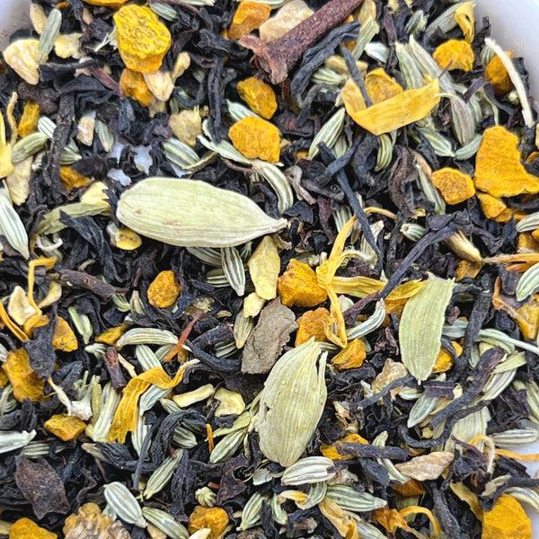 Ingredients: organic fennel seeds, turmeric, Assam and Nilgiri teas, ginger, cardamom, cloves