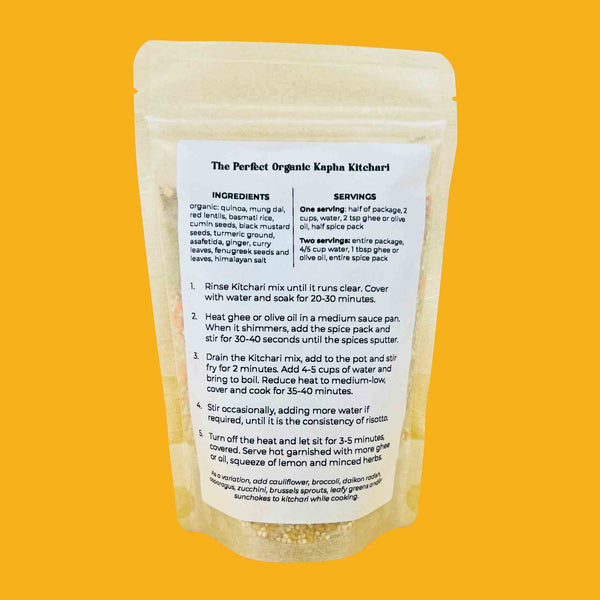 Kitchari is the healing masterpiece in Ayurveda and is the ultimate comfort food. Easily digested and assimilated, it is a complete protein that cleanses the body from within, without hunger. Blended with the ingredients designed to balance the Kapha dosha.